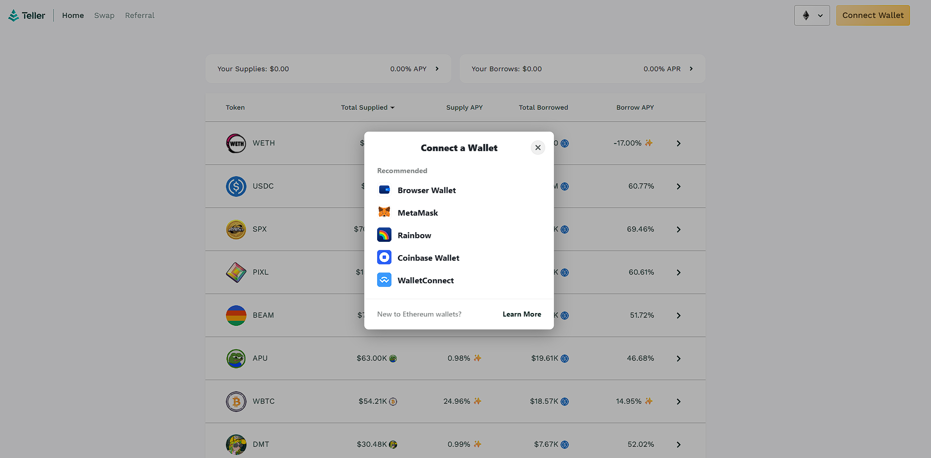 Teller is a lending protocol designed for earning yield on long-tail assets.