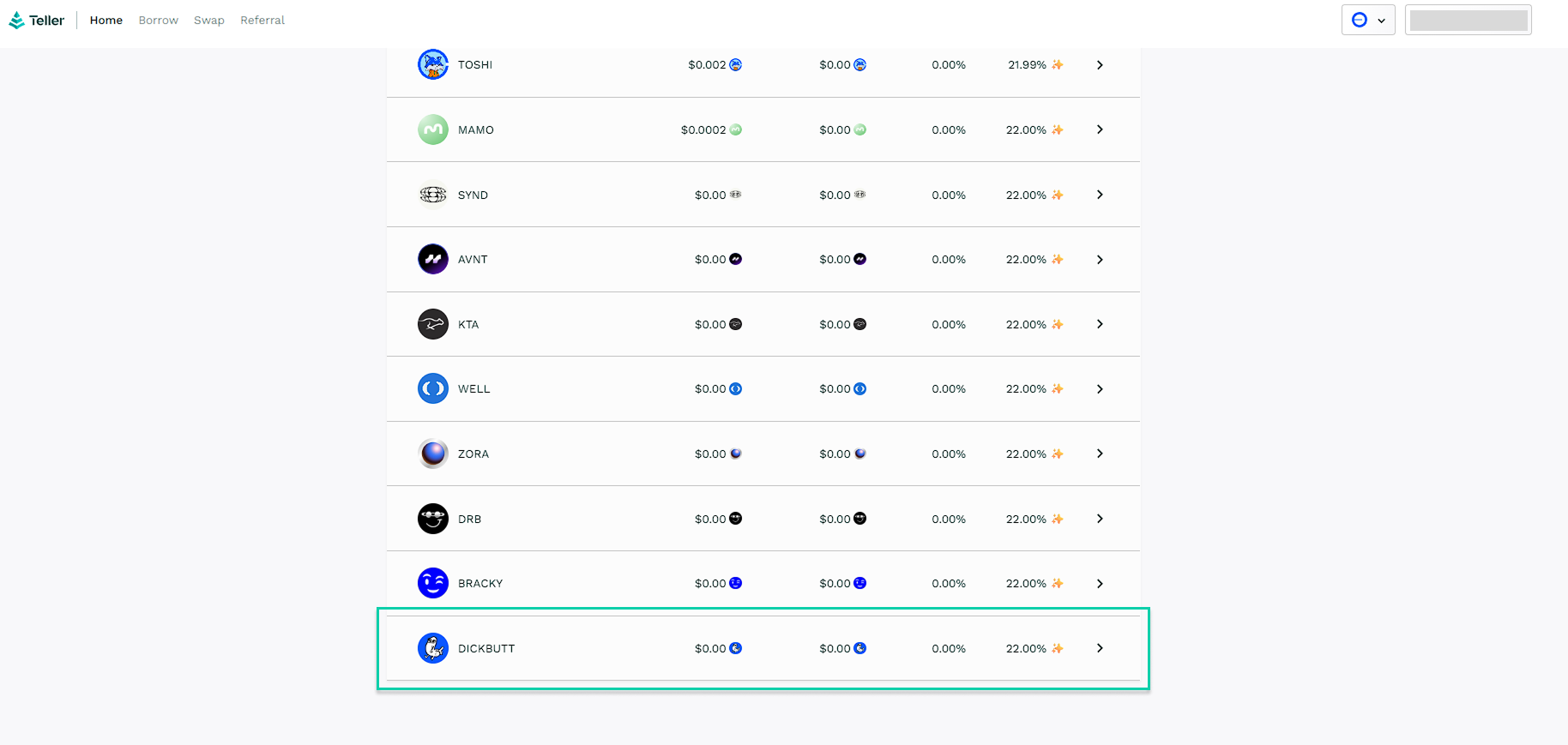 Lend DICKBUTT to Earn Yield on Teller