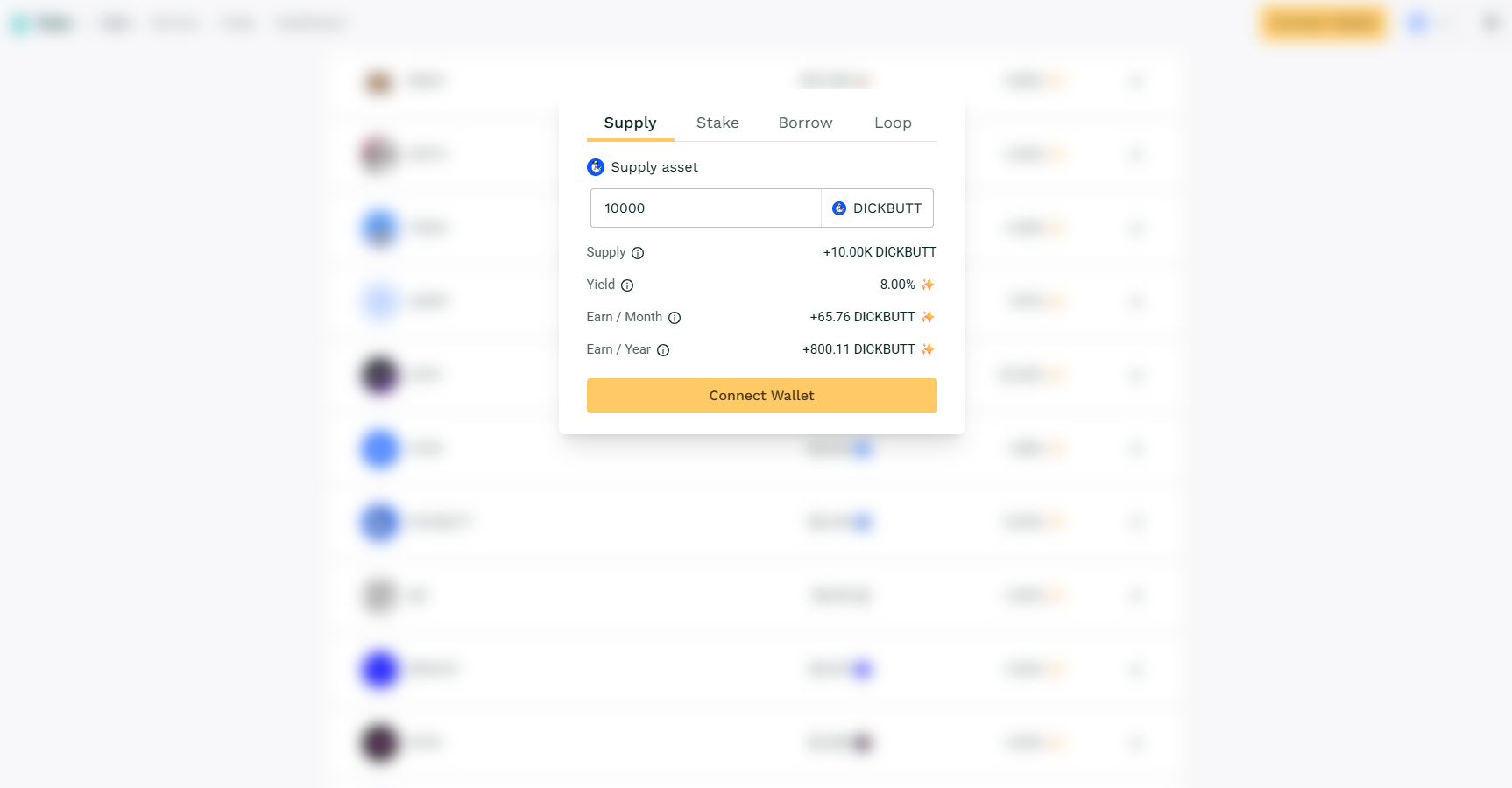 3. Select the $DICKBUTT lending pool