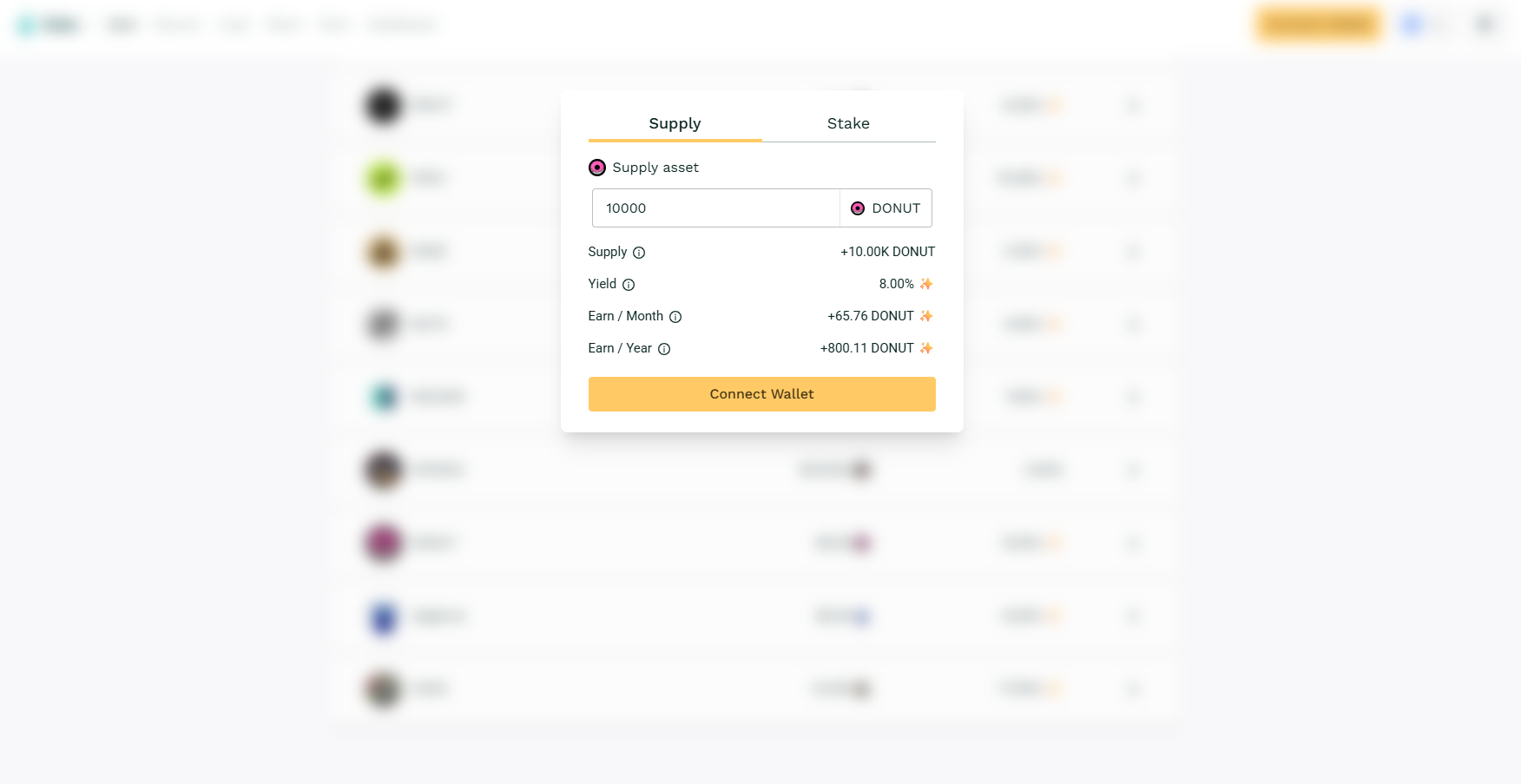 Staking rewards are paid by Teller to bootstrap liquidity on selected pools. Supply and stake your assets to start earning rewards per block. You can claim and restake rewards at any time.