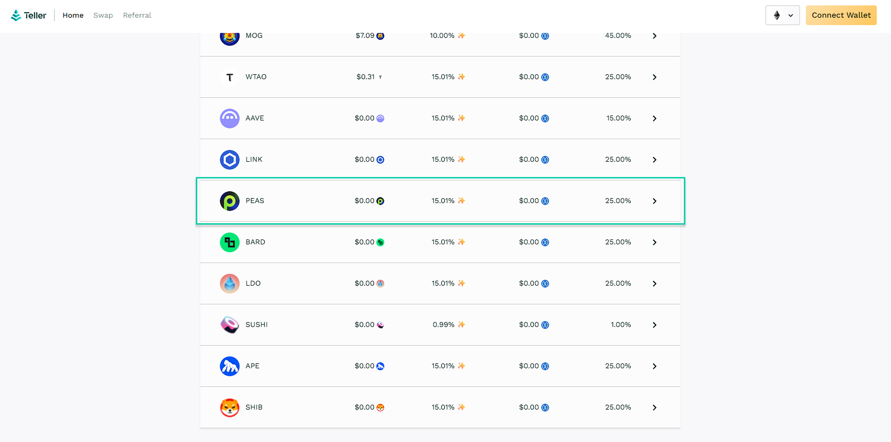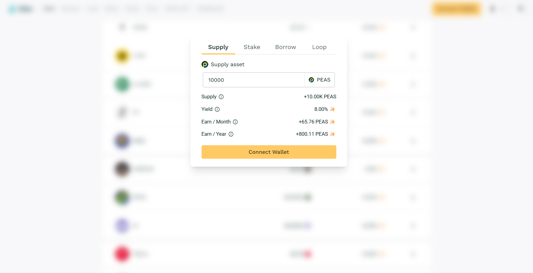 3. Select the $PEAS lending pool