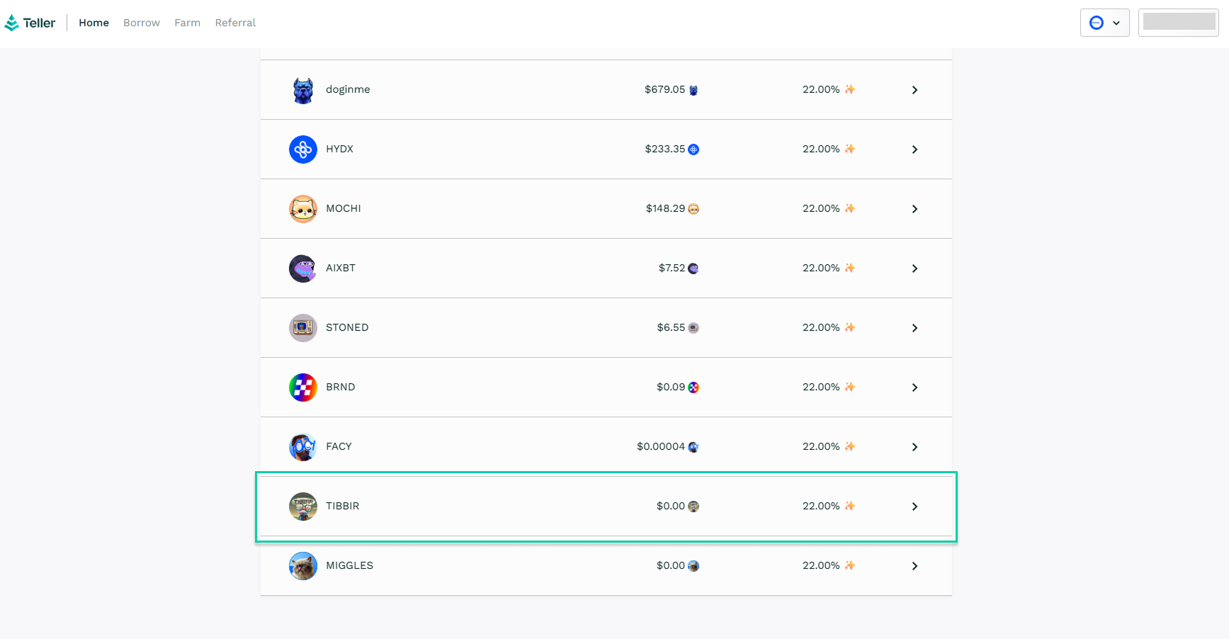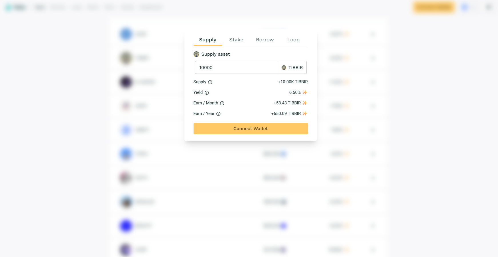 3. Select the $TIBBIR lending pool