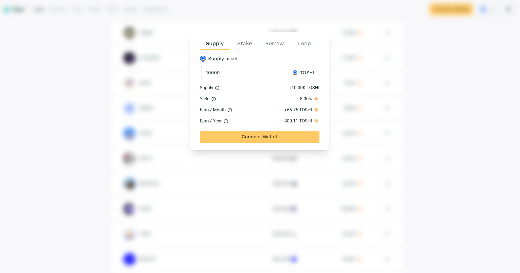 Just your $TOSHI, earning more $TOSHI while you keep full control of your position.
