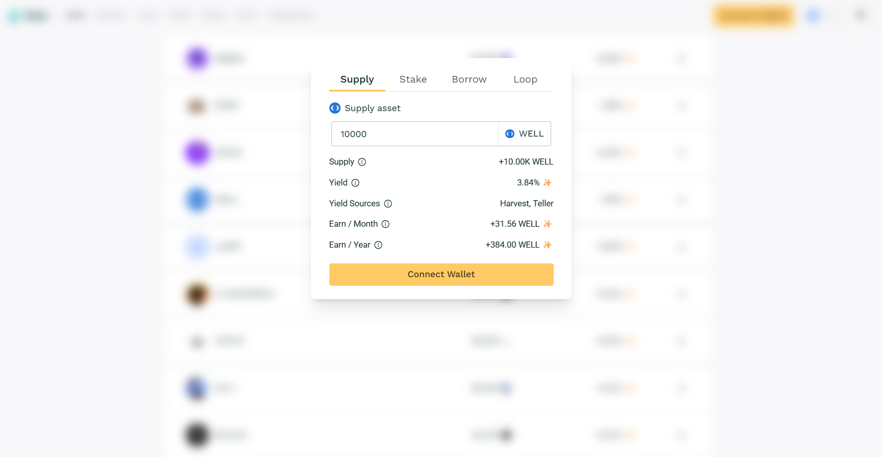 Staking rewards are paid by Teller to bootstrap liquidity on selected pools. Supply and stake your assets to start earning rewards per block. You can claim and restake rewards at any time.
