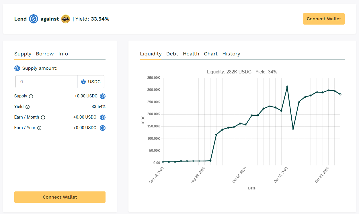 $SPX loans remained active with liquidity deployed. Yields approached 33%, supported by borrower rollover activity and collateral ratios.