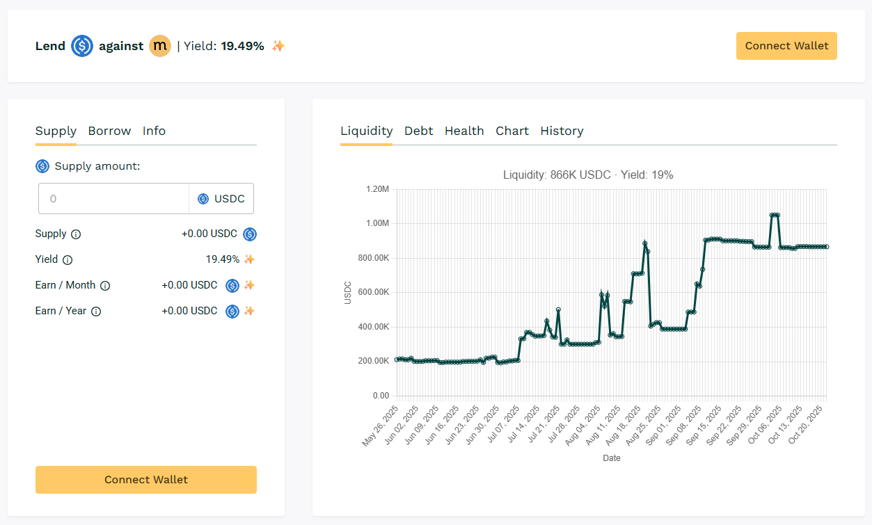 The main $MASA pool continues to draw liquidity, sustaining APYs above 19% with borrower demand.