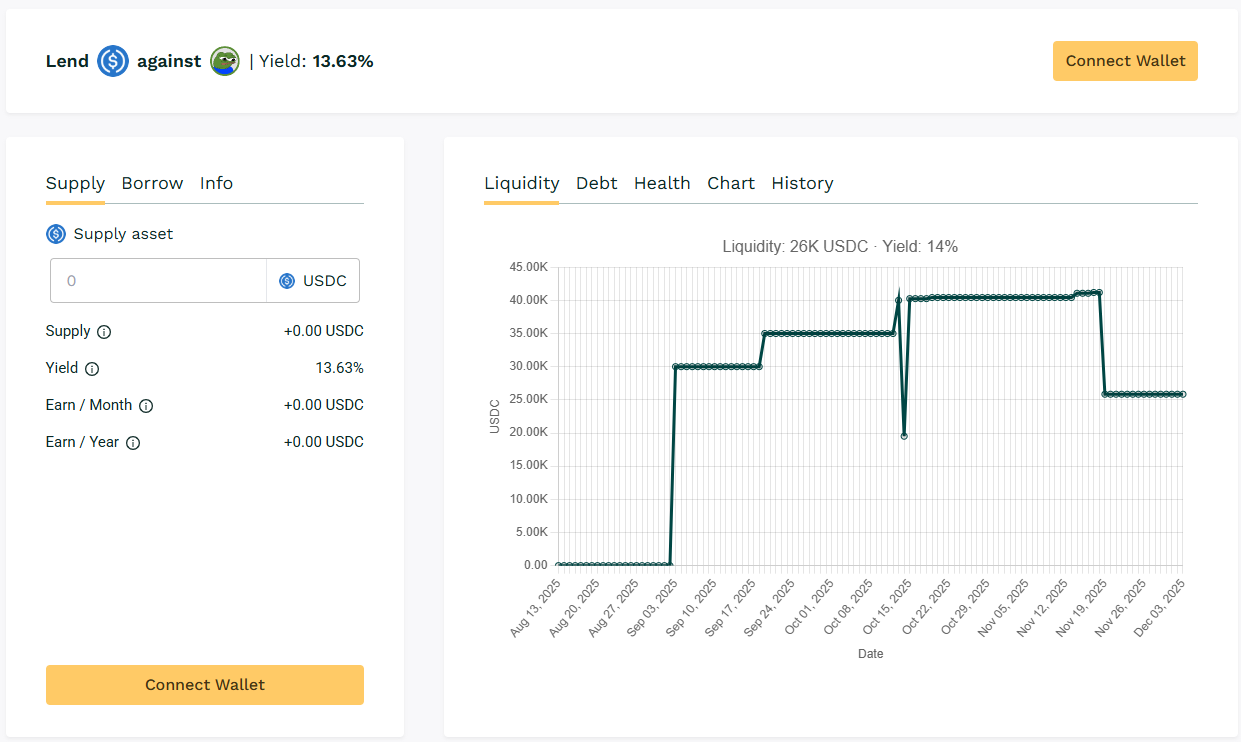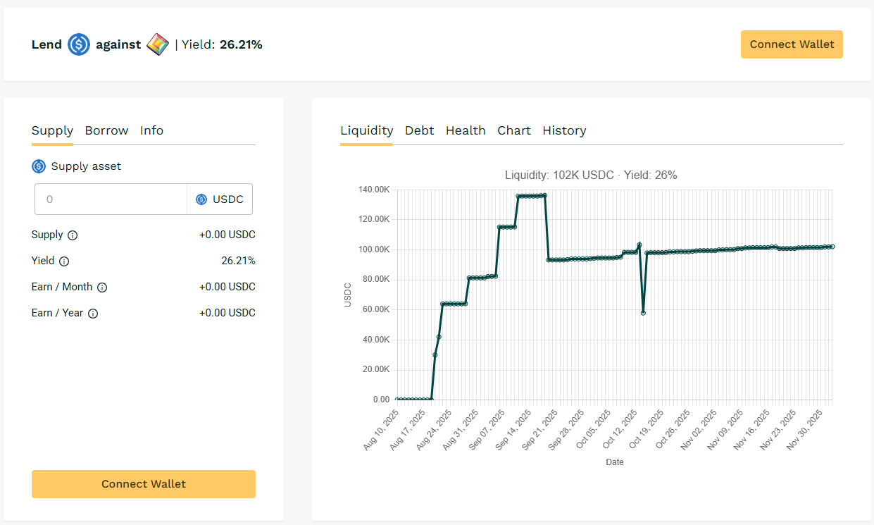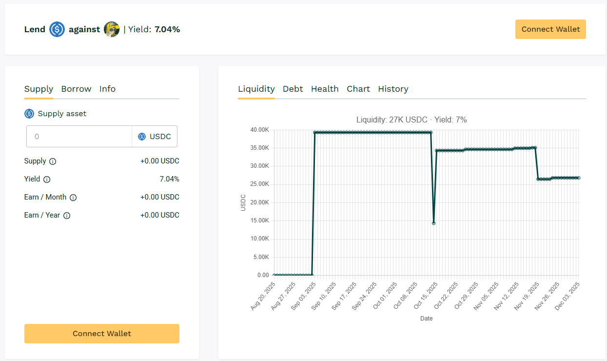 โBTC backed pools continue to provide lower-risk lending options, anchoring the platformโs blue-chip segment with predictable APYs.